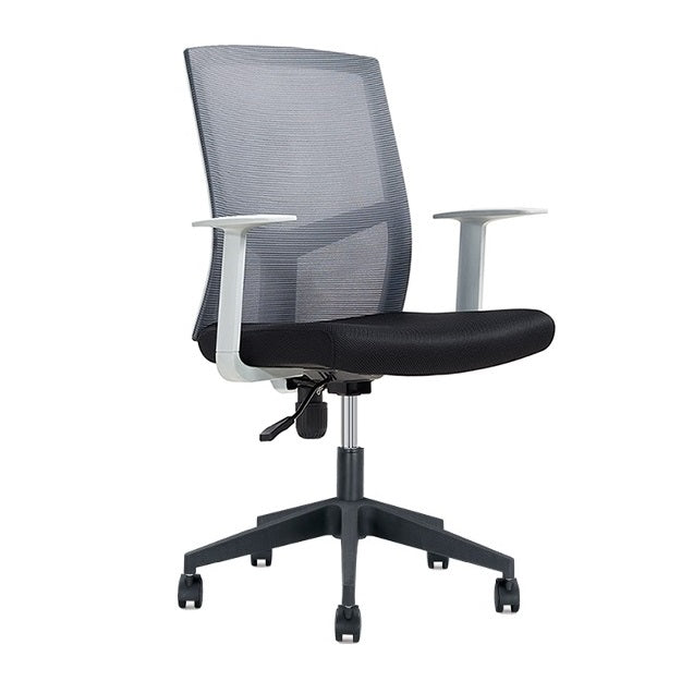 Diseñada para ofrecer comodidad y soporte durante largas horas de trabajo. Cuenta con un respaldo de malla transpirable que mantiene una ventilación óptima, asiento acolchado de alta densidad y apoyabrazos fijos que brindan estabilidad. Su base de cinco ruedas permite un movimiento fluido y seguro. Ideal para oficinas, escritorios en casa o espacios de estudio modernos.